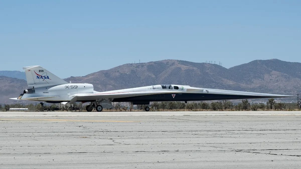 गडगडाट सोनिक बूम न बनवता नासाच्या एक्स -59 ला जमिनीपासून ध्वनीच्या वेगाने उड्डाण करण्यासाठी डिझाइन केले गेले आहे, जे सहसा सुपरसोनिक फ्लाइटशी संबंधित असतात. तार्किकदृष्ट्या वाढवलेल्या डिझाइनची वैशिष्ट्यीकृत, हे 99 फूट विमान, जेटिसिस फ्रंट विंडस्क्रीन आणि आता धावपट्टीच्या दिशेने जात आहे. पायलट्स ऑगमेंटेड रिअलिटी (एआर) सक्षम केलेल्या बंद-सर्किट कॅमेरा सिस्टमद्वारे समोर काय आहे ते पाहू शकतात, ज्याला नासाने बाह्य व्हिजन सिस्टम (एक्सव्हीएस) म्हटले आहे. या महिन्यात नासाने प्रायोगिक विमानाचा ताबा घेतला आणि त्यावर टॅक्सी चाचण्या केल्या.